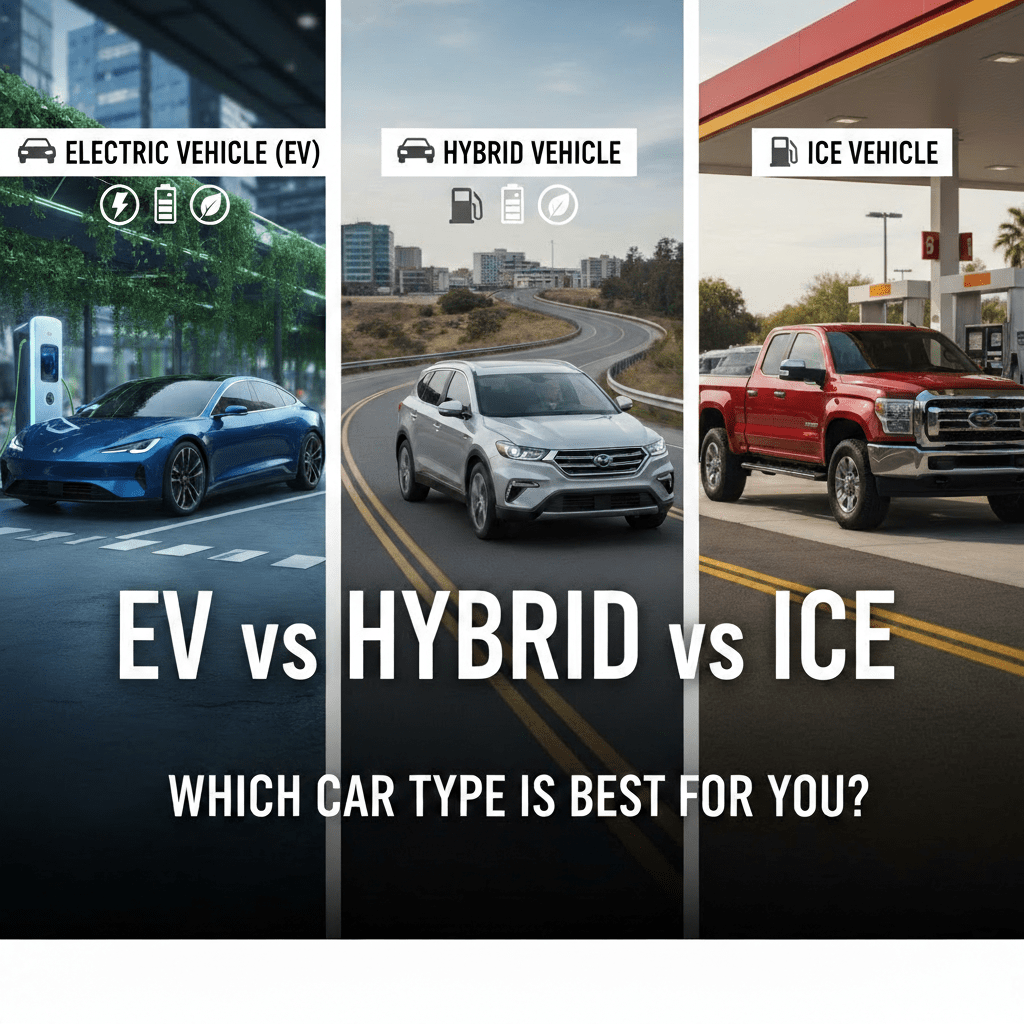 Choosing the right car has become more confusing than ever. Today’s car buyers are no longer limited to petrol or diesel vehicles. Instead, they can choose between Electric Vehicles (EVs), Hybrid Cars, and ICE (Internal Combustion Engine) vehicles.